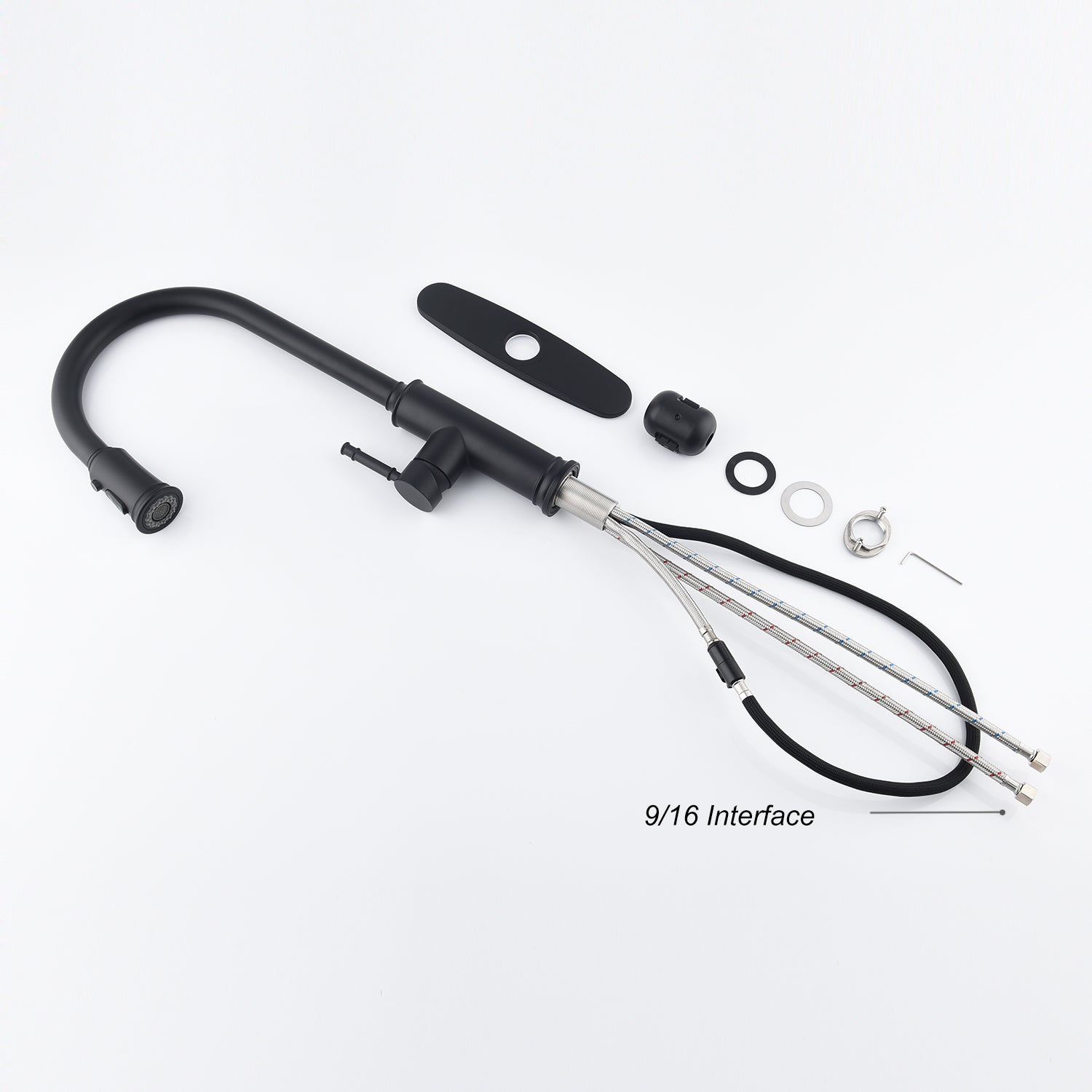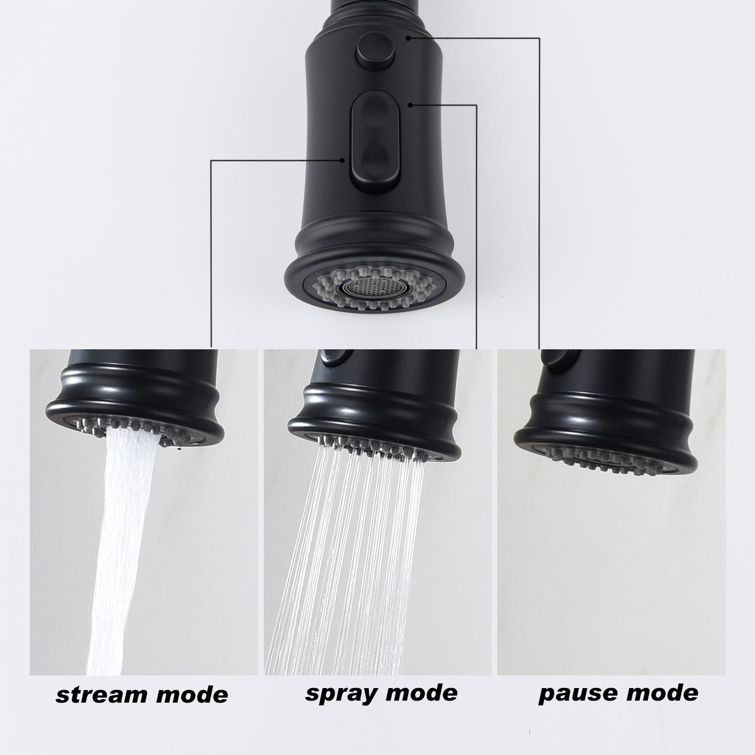 • The pull-out spray head is designed to fit in a variety of sinks, and the high-arc nozzle rotates 360° to make your water use easier and more convenient.