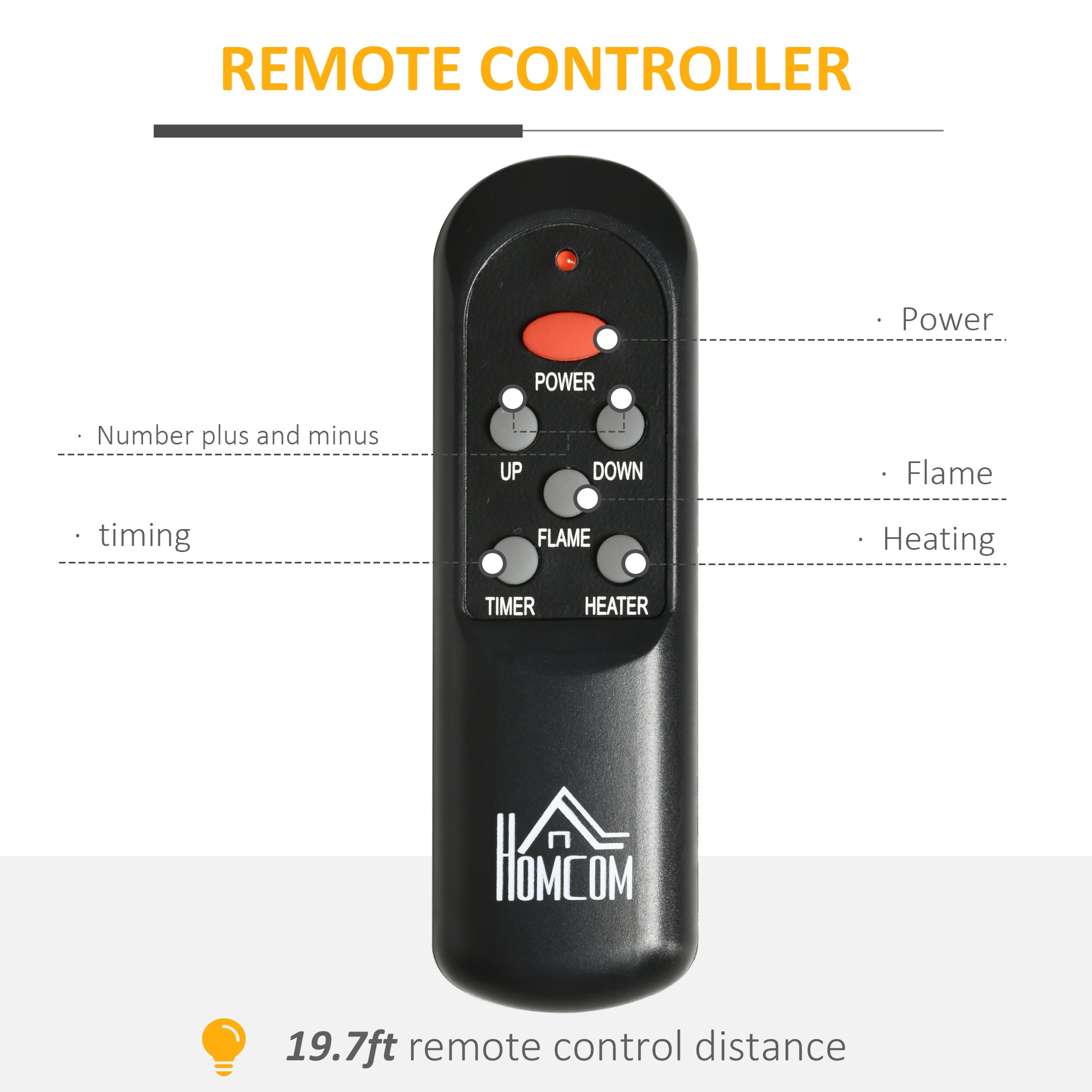 • 2-Way Control: This freestanding fireplace heater can be adjusted by pressing the buttons on the front or with a remote control to turn it on/off, brightness, timer and heat temperature.