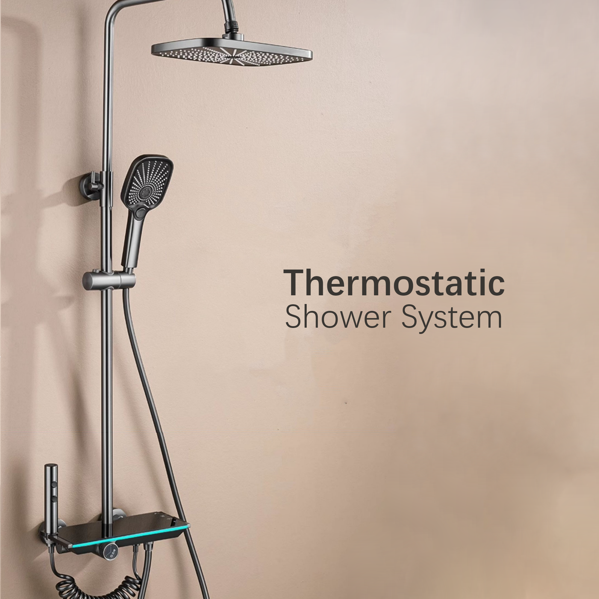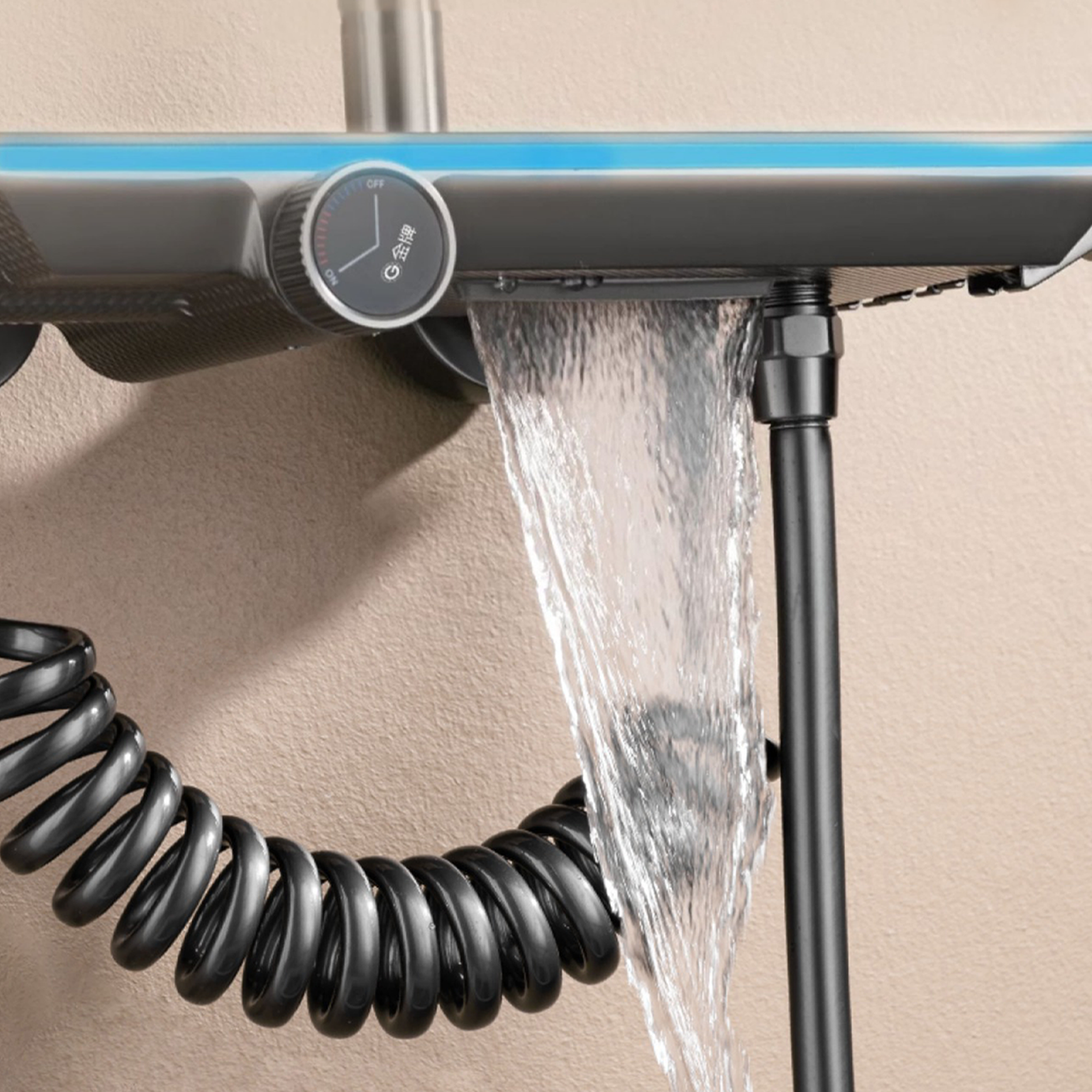 1. The shower kit adopts LED digital display. When showering, the temperature adjustment is clear at a glance. Time display: It is convenient for you to grasp the shower time; the main body is added with an ambient light strip to add a sense of sight to the shower experience