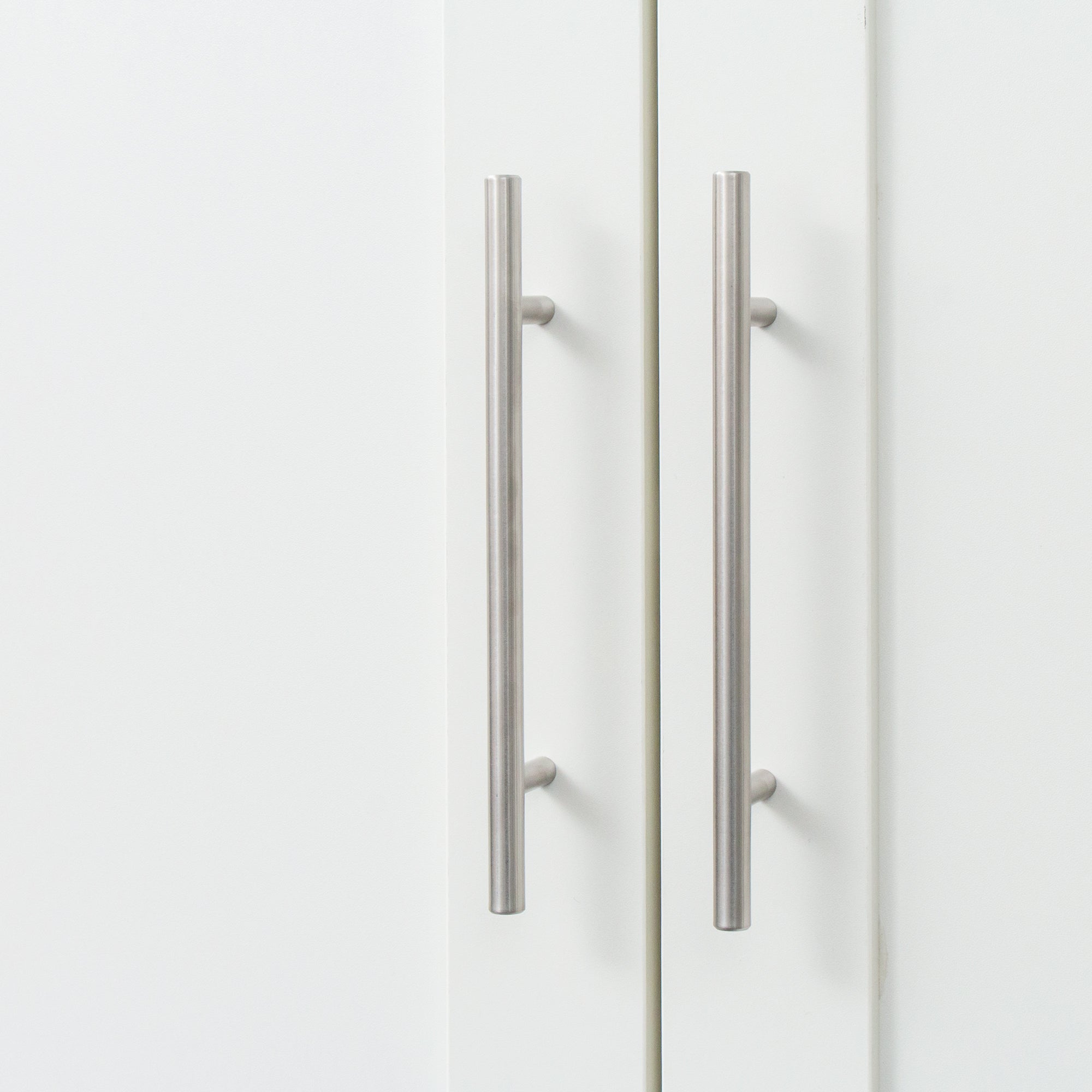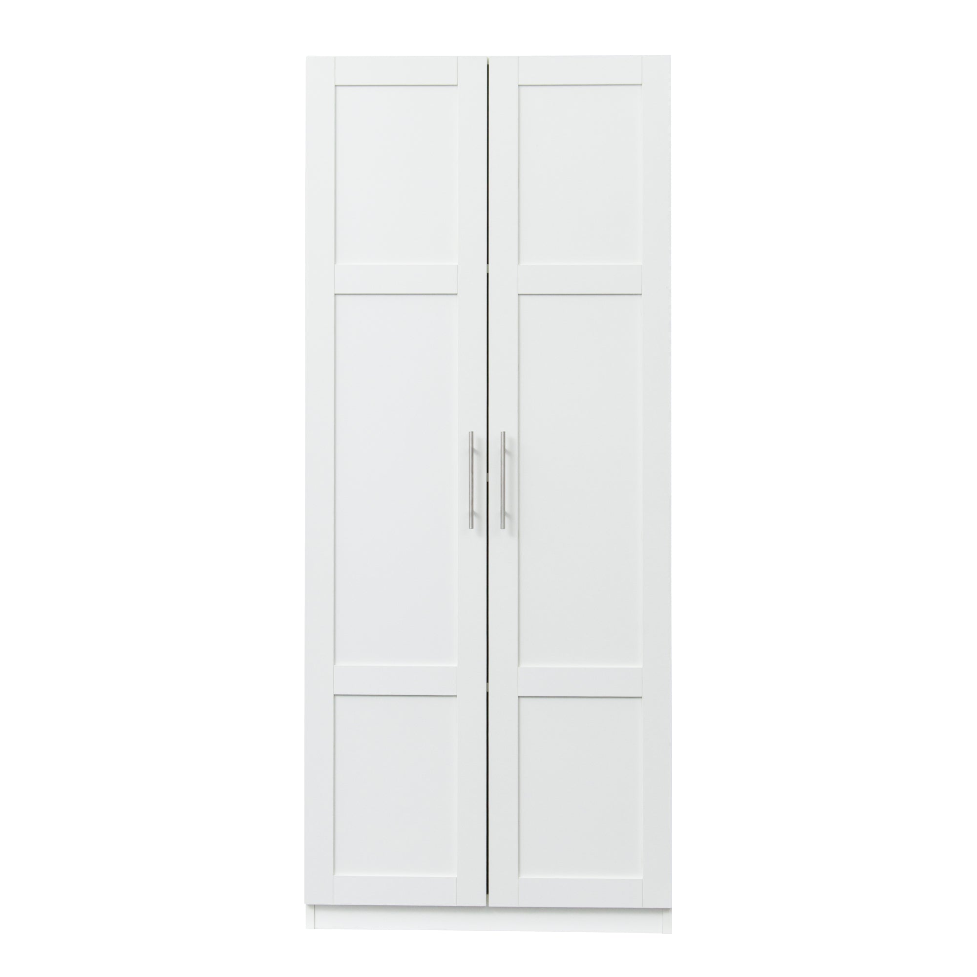 High wardrobe and kitchen cabinet with 2 doors and 3 partitions to separate 4 storage spaces,white