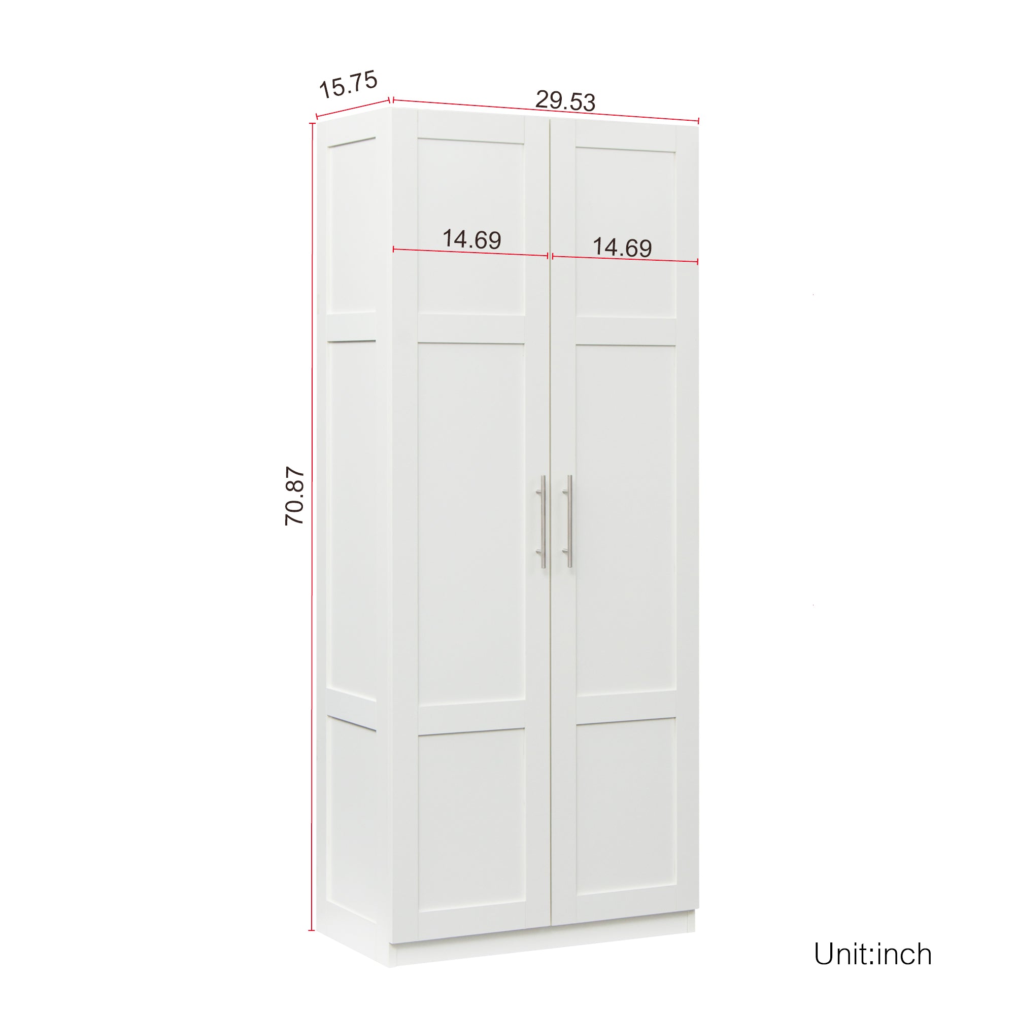 • Dimensions 29.53 W x 15.75 D x70.87 H There are 2 doors and 3 shelves, which can provide more storage space