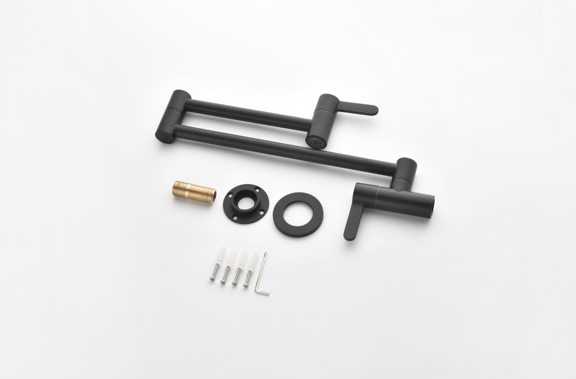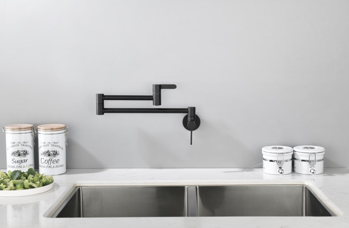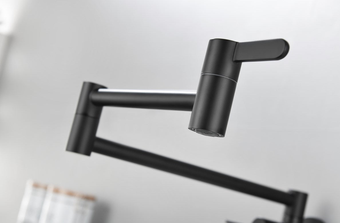 • The pot filler faucet features a free-swivel arm design, making it easier to fill any pot on the stovetop and for easier cleaning.