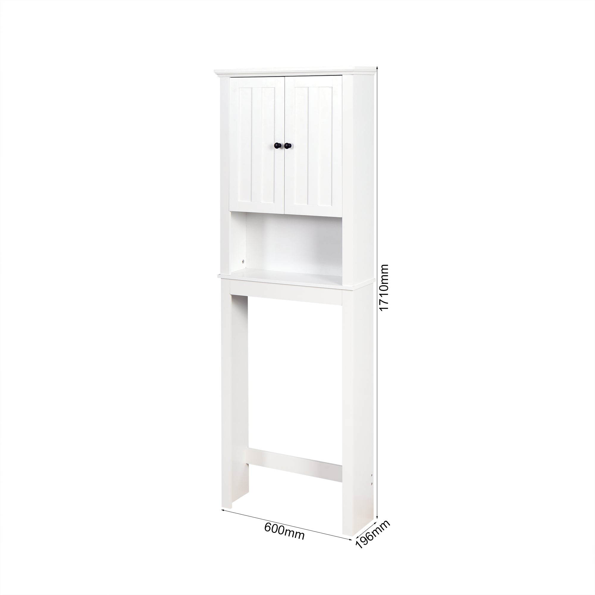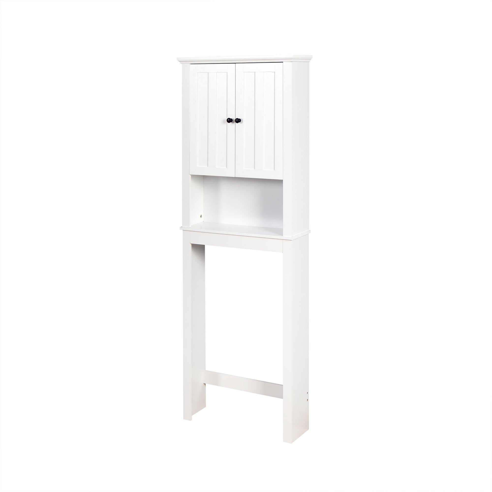 PREMIUM MATERIAL: This bathroom cabinet over the toilet is constructed of high-quality engineered wood, adding style and charm with carved door panel and black knobs.    The anti-toppling fitting can anchor to the wall for security and stability.
