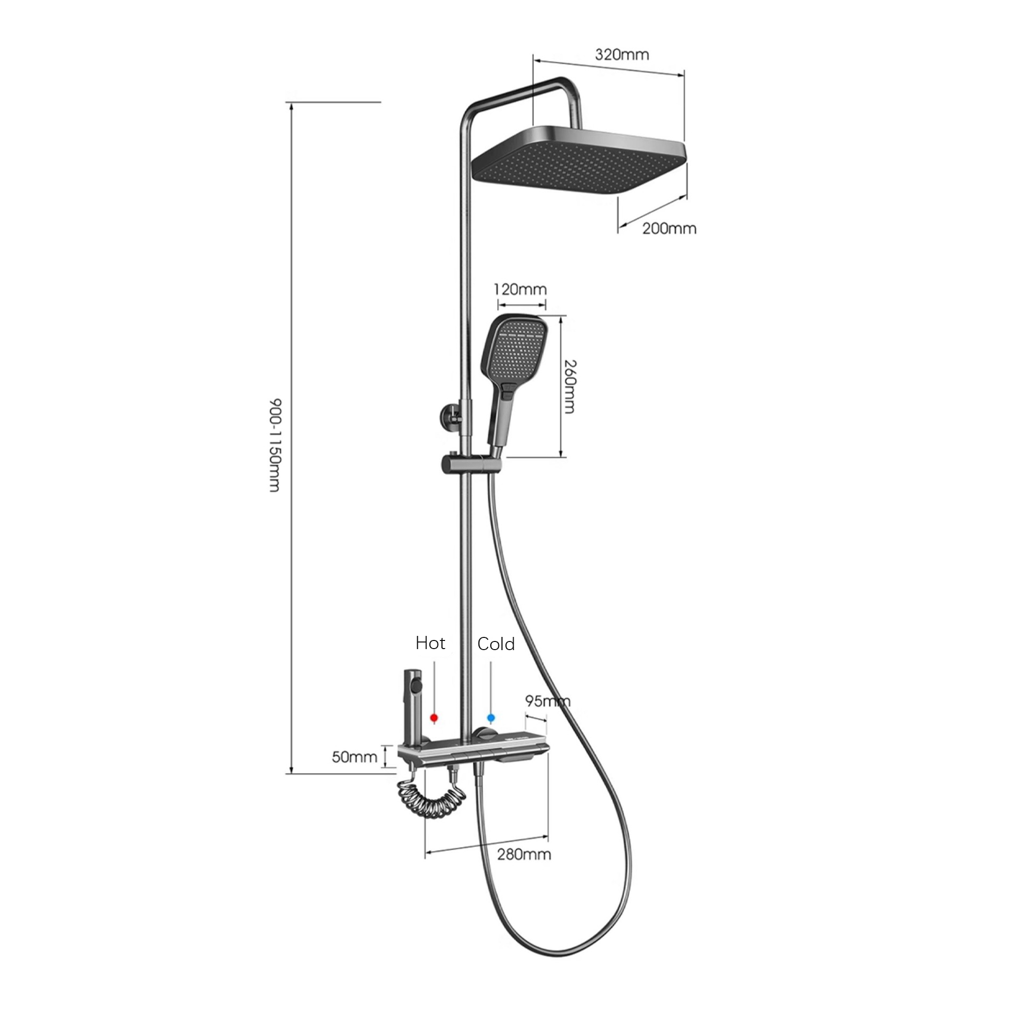 PVD Hot & cold Shower shower set, piano keys, pressurized digital display, bathroom shower, rain shower