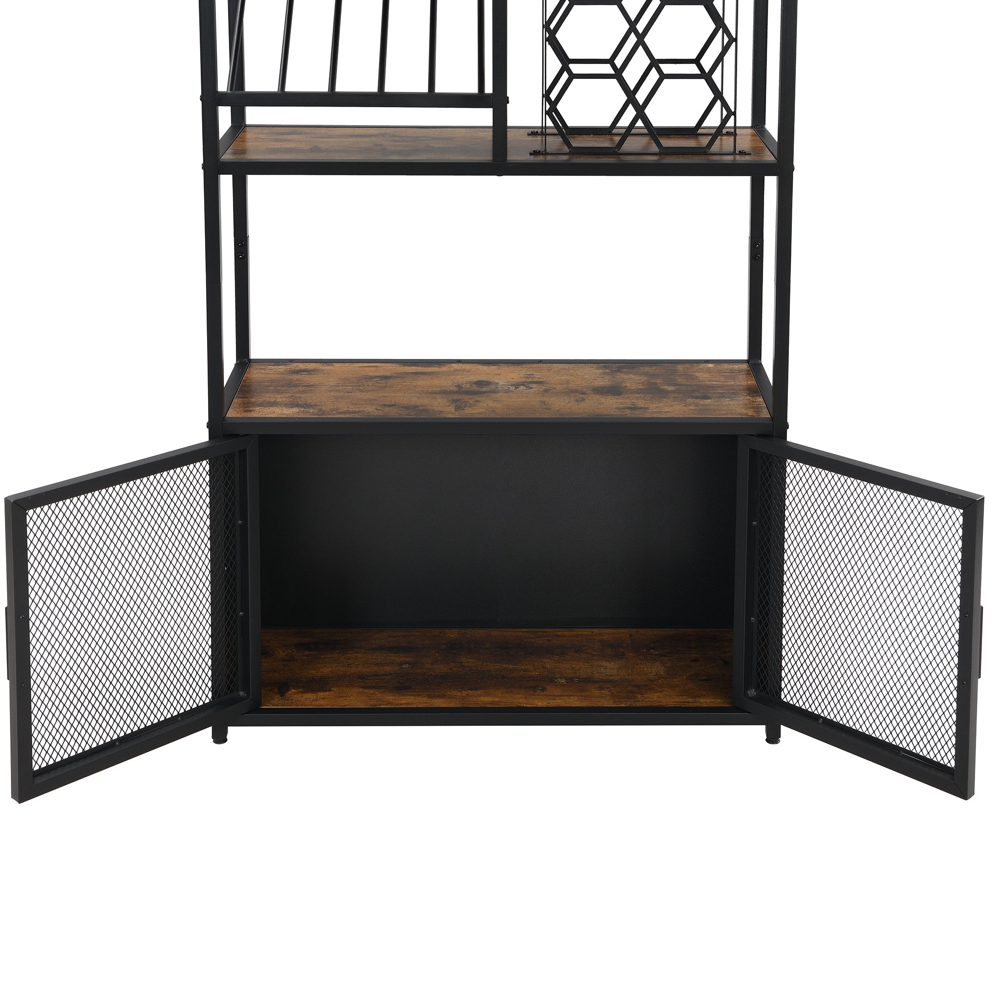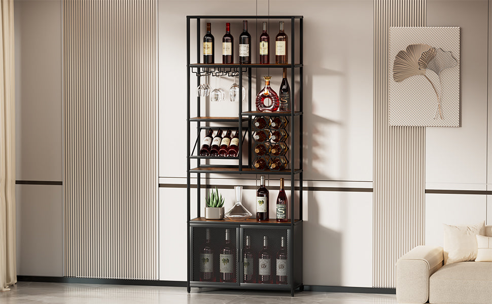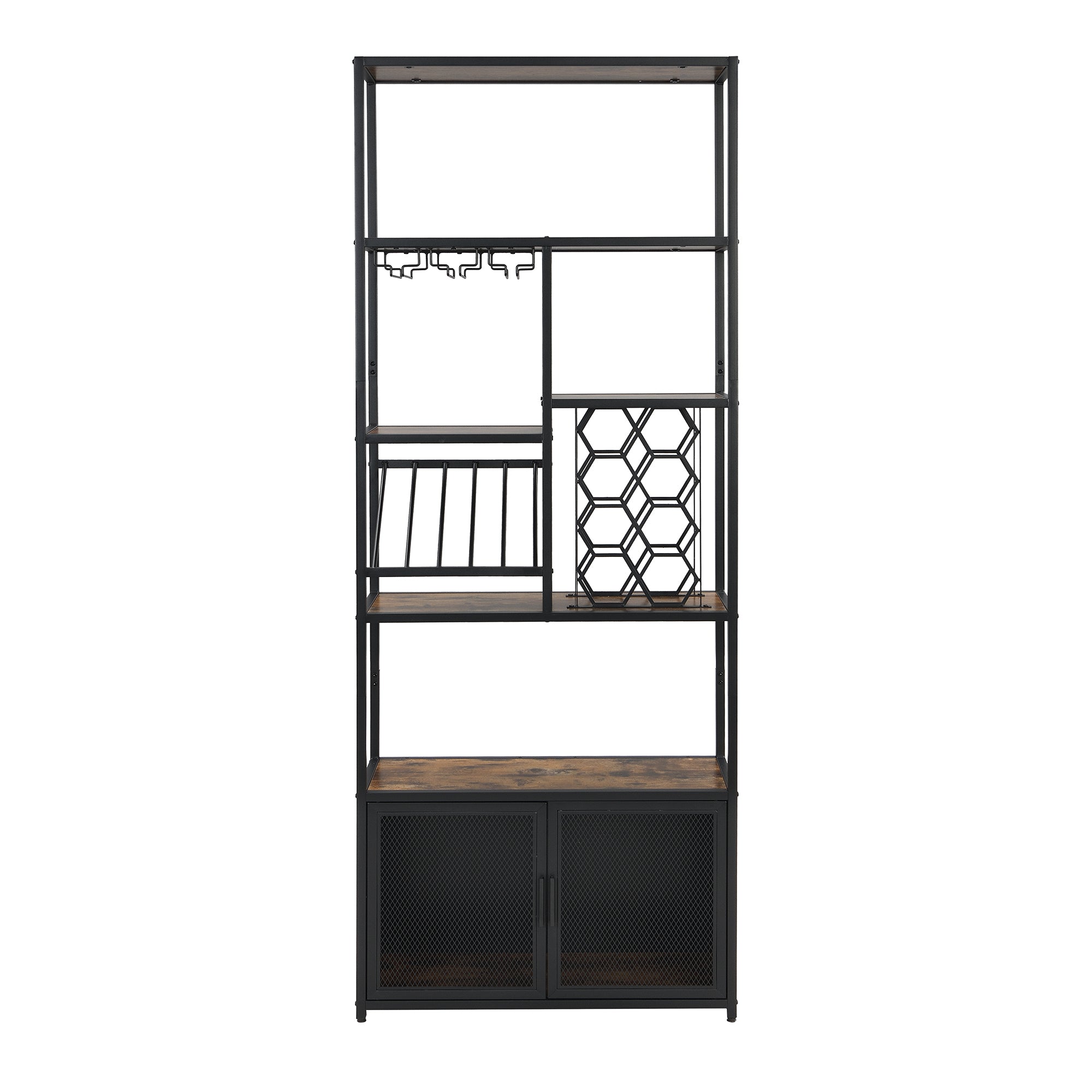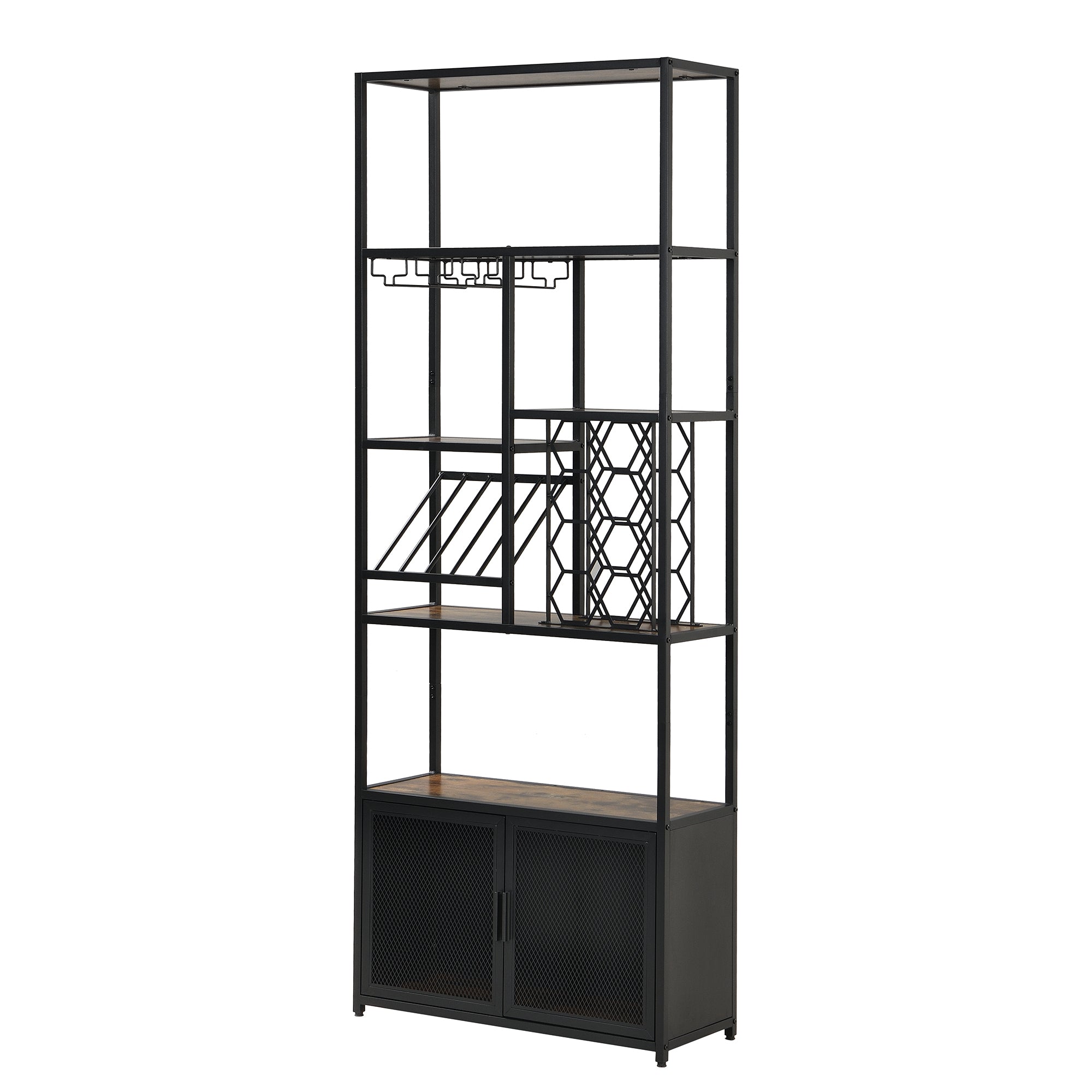 82.7" Industrial Standing Wine Rack with Glass Rack Tall Freestanding Floor Bar Cabinet
