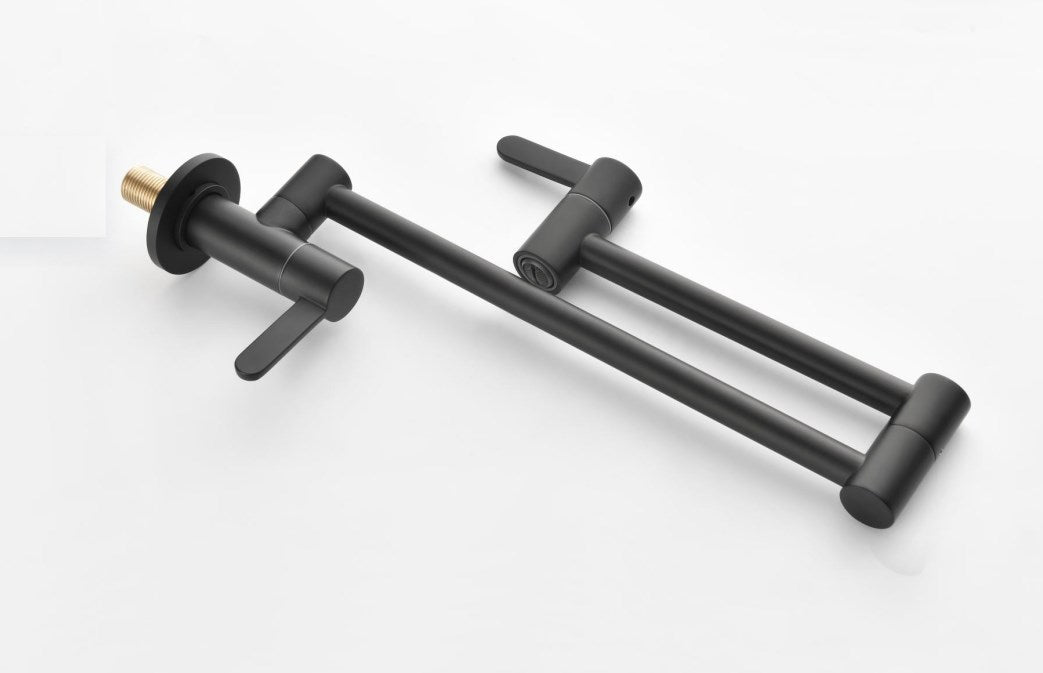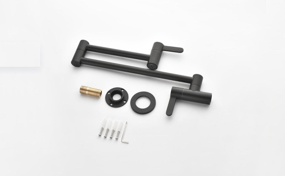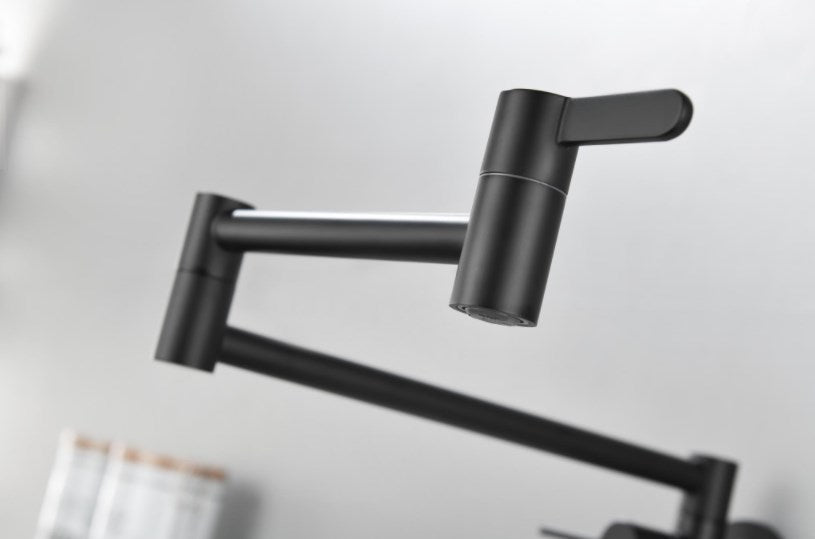 The pot filler faucet features a free-swivel arm design, making it easier to fill any pot on the stovetop and for easier cleaning. The double handles can well control the water flow, facilitate operation, and prevent dripping.