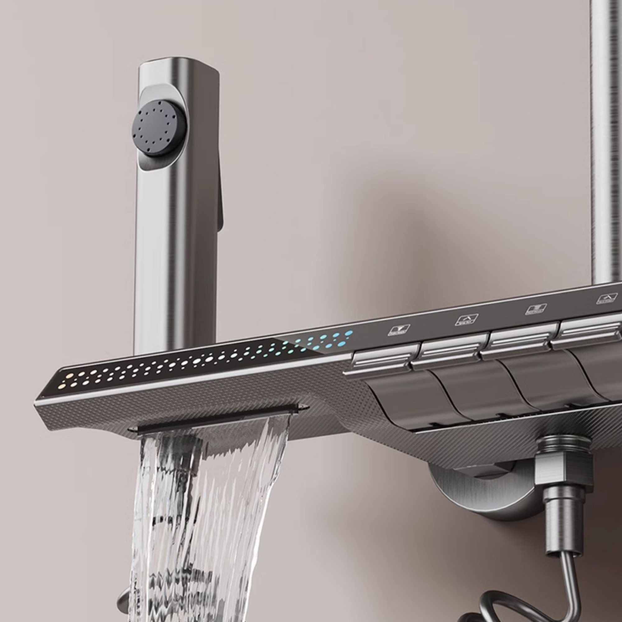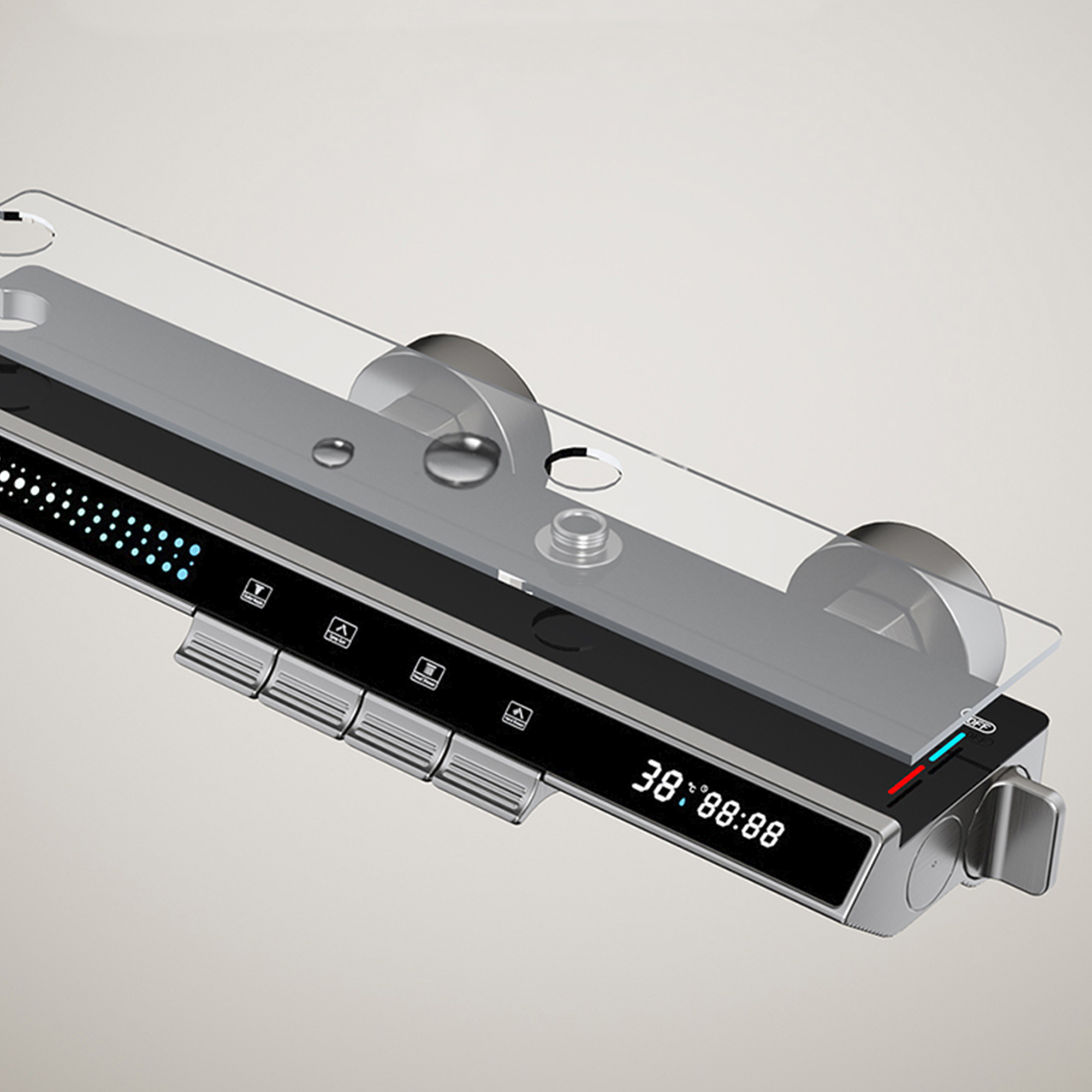 🏊【Piano keys, 4 types of water outlets, 34cm super large shelf】Independent four-function shower, combined with piano keys, combining practicality and art, allowing your fingertips to play a four-step water rhapsody. The 34cm rectangular body can be used as a storage table, making effective use of bathroom space. 3-speed handheld mode, just tap the button.