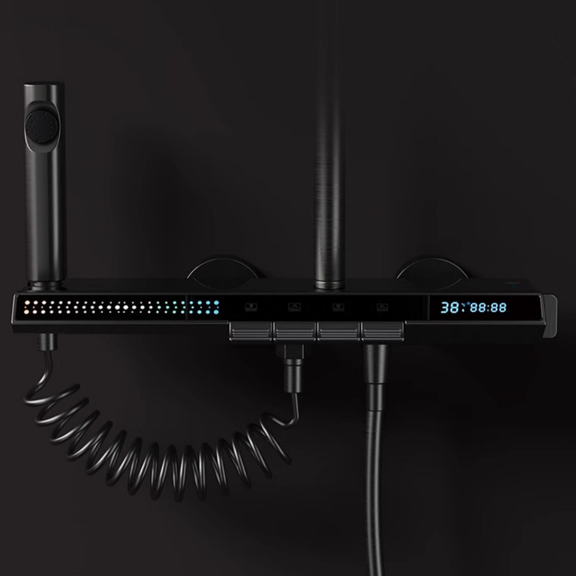 Thermostatic Shower System, Square Shower Faucet Set, Digital Display, Modern Piano Keys Rain Shower Head Set with Handheld, Spray Gun, Exposed Shower Combo Set, Height Adjustable