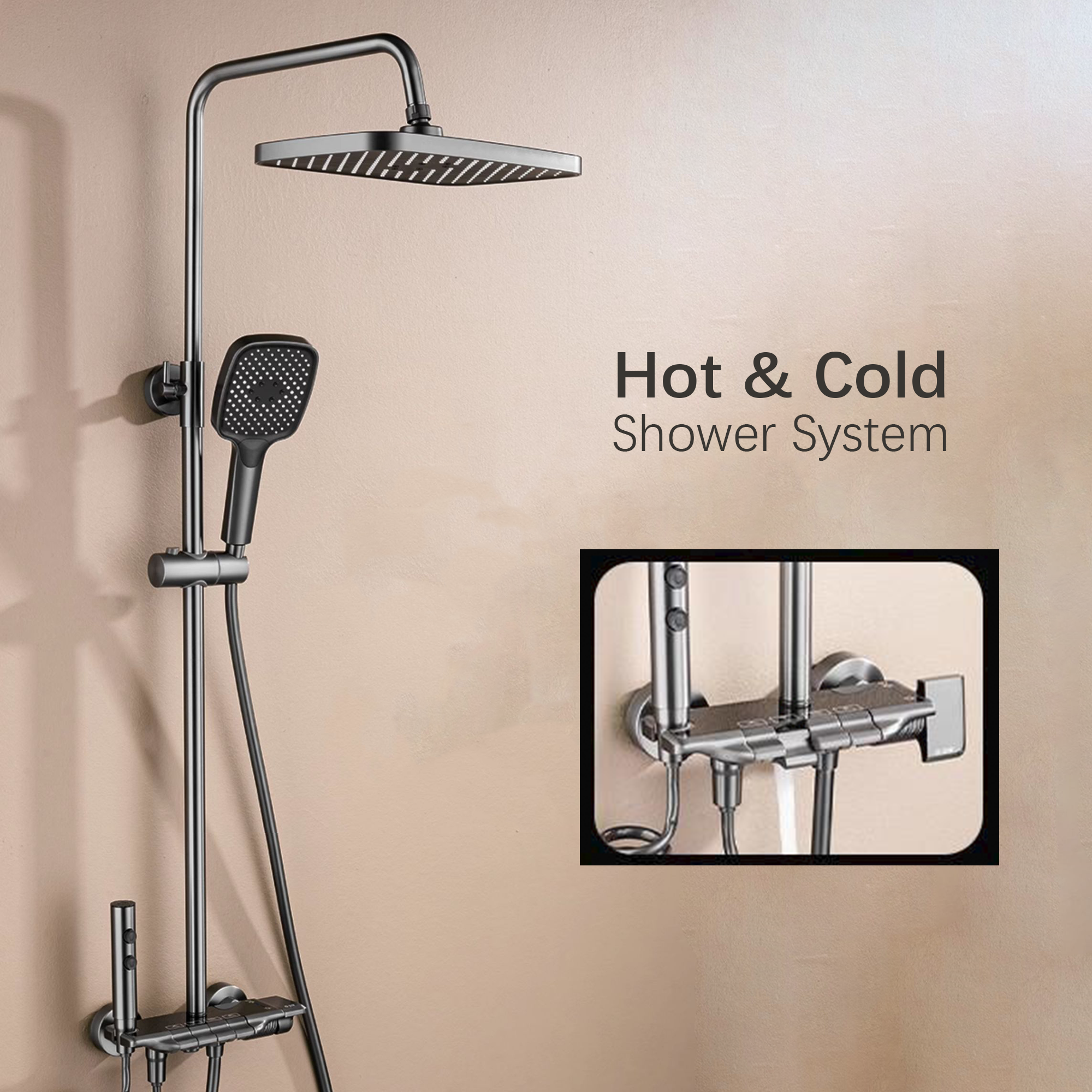 4-Way Gray Shower System with Rainfall Head, Handheld, Tub Spout & Bidet - Wall Mounted Set