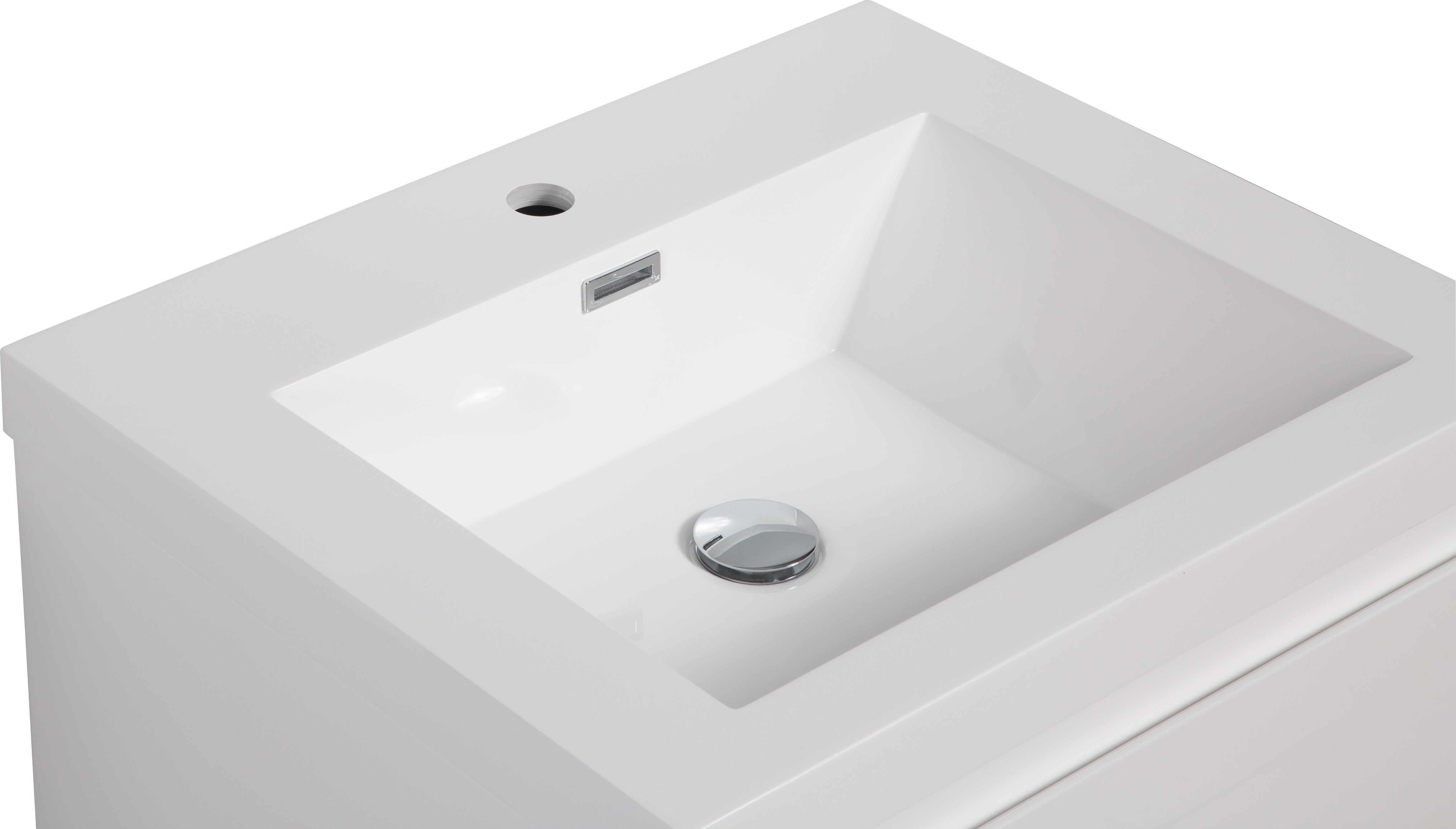 24" Floating Bathroom Vanity with Sink, Modern Wall-Mounted Bathroom Storage Vanity Cabinet with Resin Top Basin and Soft Close Drawers, Glossy White 24V11-24GW